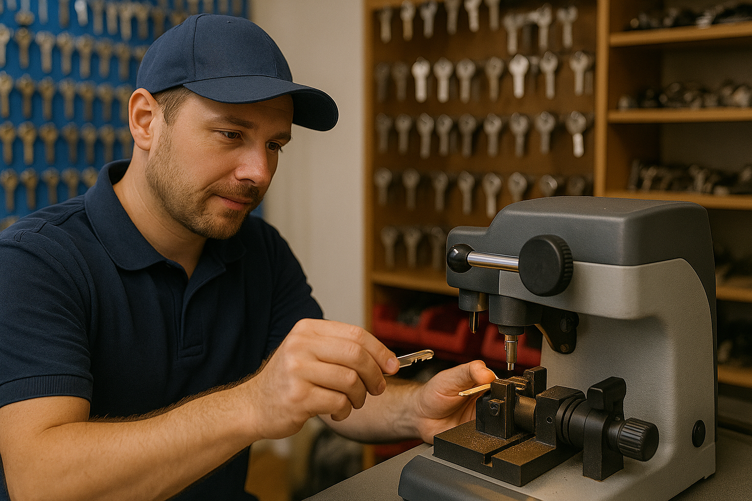 Der Ablauf ist denkbar einfach: Sie bringen Ihren Originalschlüssel zu uns oder rufen unseren mobilen Service. Unsere Fachkräfte prüfen das Modell, fertigen die Kopie mit präziser Fräsmaschine an und testen sie bei Bedarf im Musterzylinder. So garantieren wir, dass Ihre Kopie funktioniert – ohne Nachfeilen, Klemmen oder Wackeln.